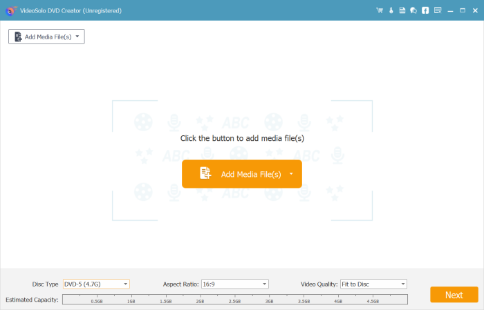 STEP 4. Next, please click Add Media File(s) option to choose the files you want to burn to DVD. But you should note that there is size limitation on your uploaded file size - you can't exceed the maximum size of the disc you are going to save the content.