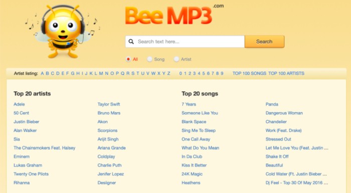 BeeMP3 is a simple and easy-to-use music downloading search engine, which offers various ways for users to search for, filter, and save music. Unlike other software, it's an online platform that works like Limewire. With BeeMP3, you can save much storage space because you don't need to download any software. It also recommends trending music and singers. However, while using BeeMP3, people need to pay attention to the risk of viruses and check the songs before downloading.